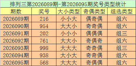 排列三第2026095期回顾:奖号568,奇偶比1:2,大小比3:0,和值19,类型:组六。